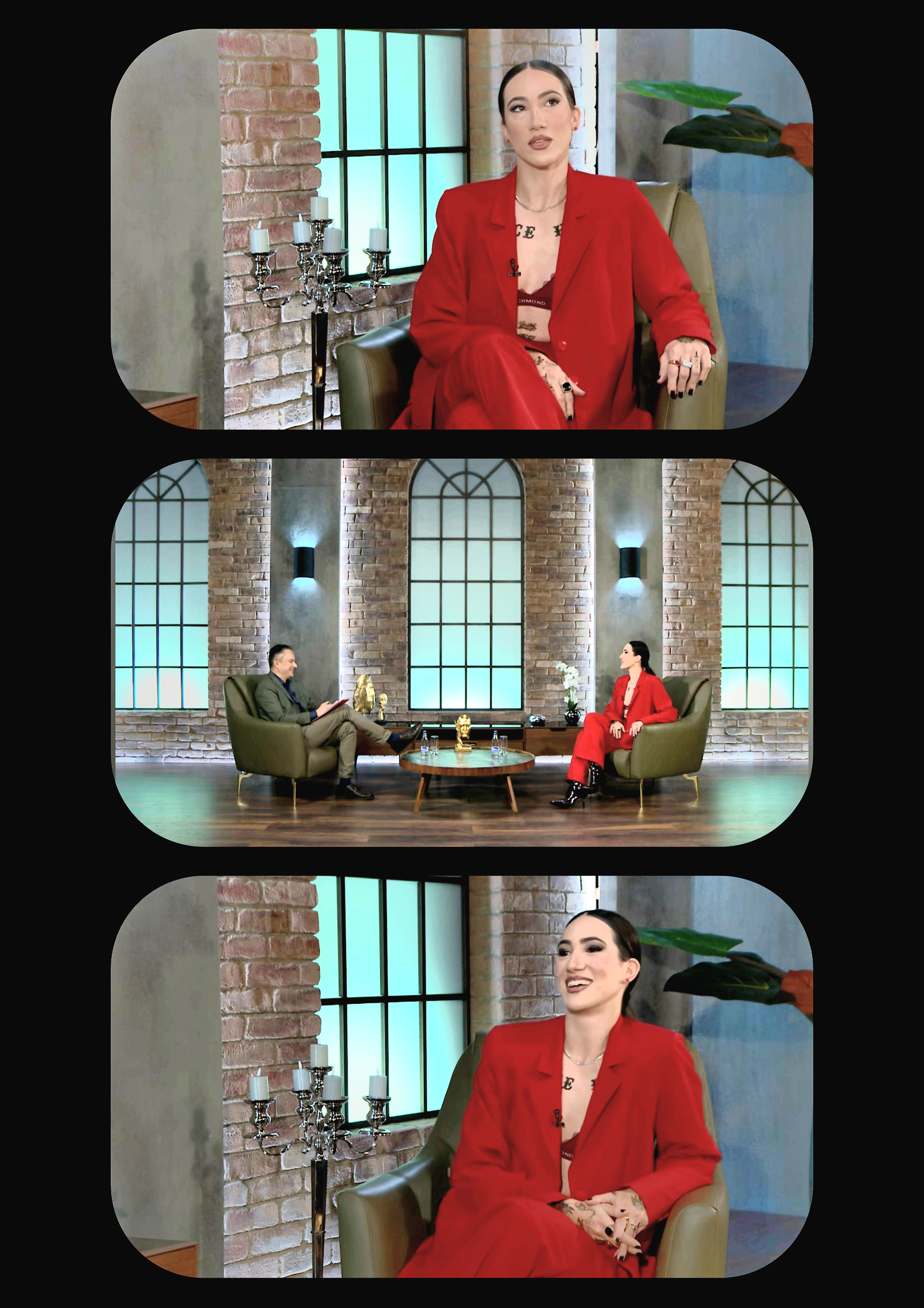 The conversation reveals details about her personality, her attitude towards her character and aspects of her personality both in private and business life.